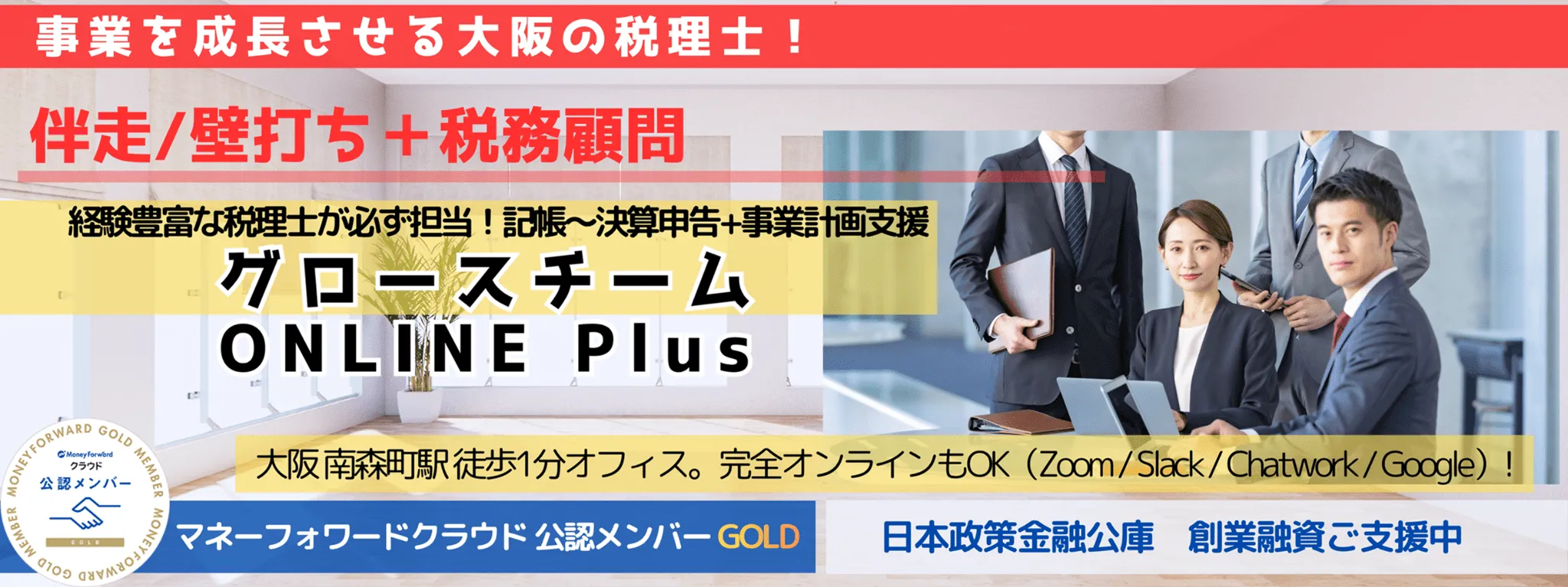 大阪市内の南森町駅出口から徒歩30秒のビルにある「グロースチーム経営会計事務所」は、事業経営に挑戦し続ける経営者のあなたを徹底的にサポート。事業経営に伴走し事業の成長を支援します。